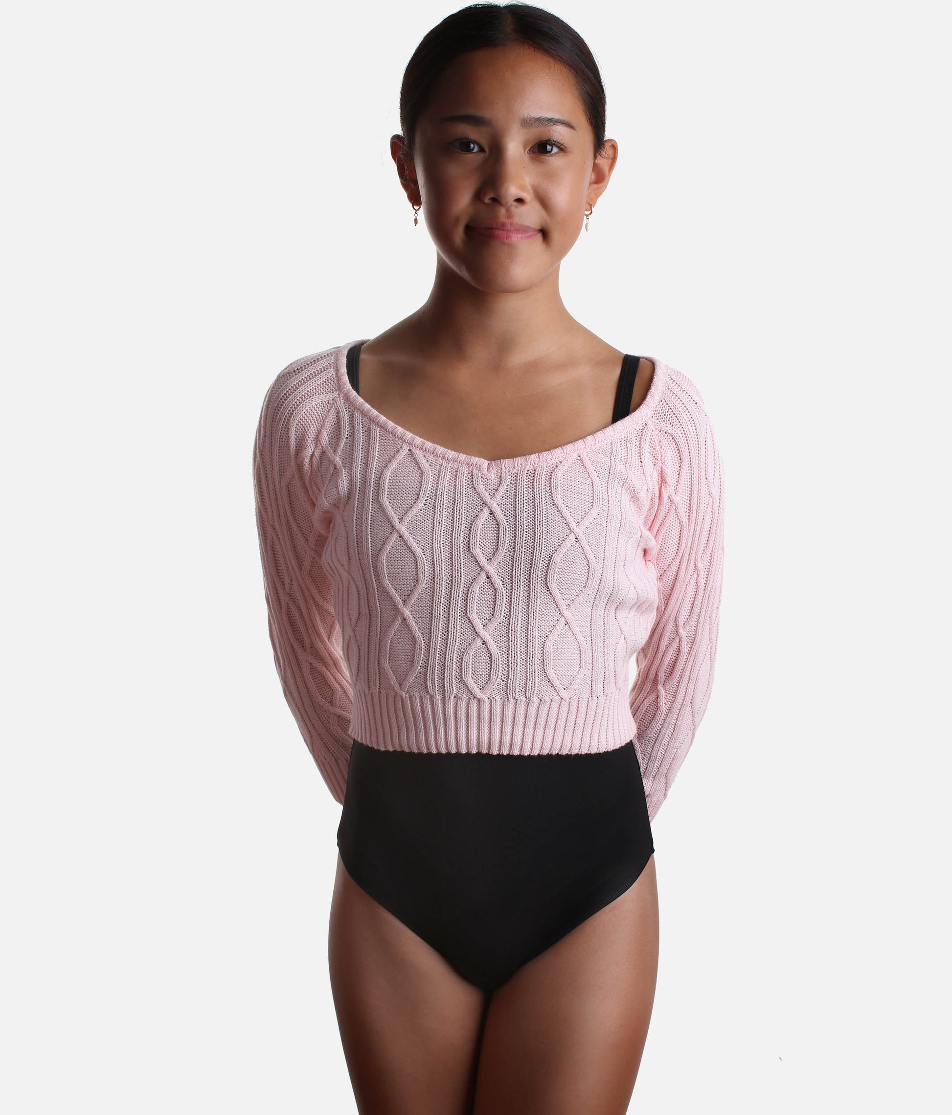 Who says warm-ups can’t be cute? The BLOCH Ballet Warmup Sweater is every dancer’s must-have for cozying up before class. With its soft cable knit and dreamy blush colour, it’s basically like wearing a hug that keeps your muscles warm and ready to go. Perfect for barre work, rehearsals, or backstage vibes - it’s your new go-to sweater for every dance day.