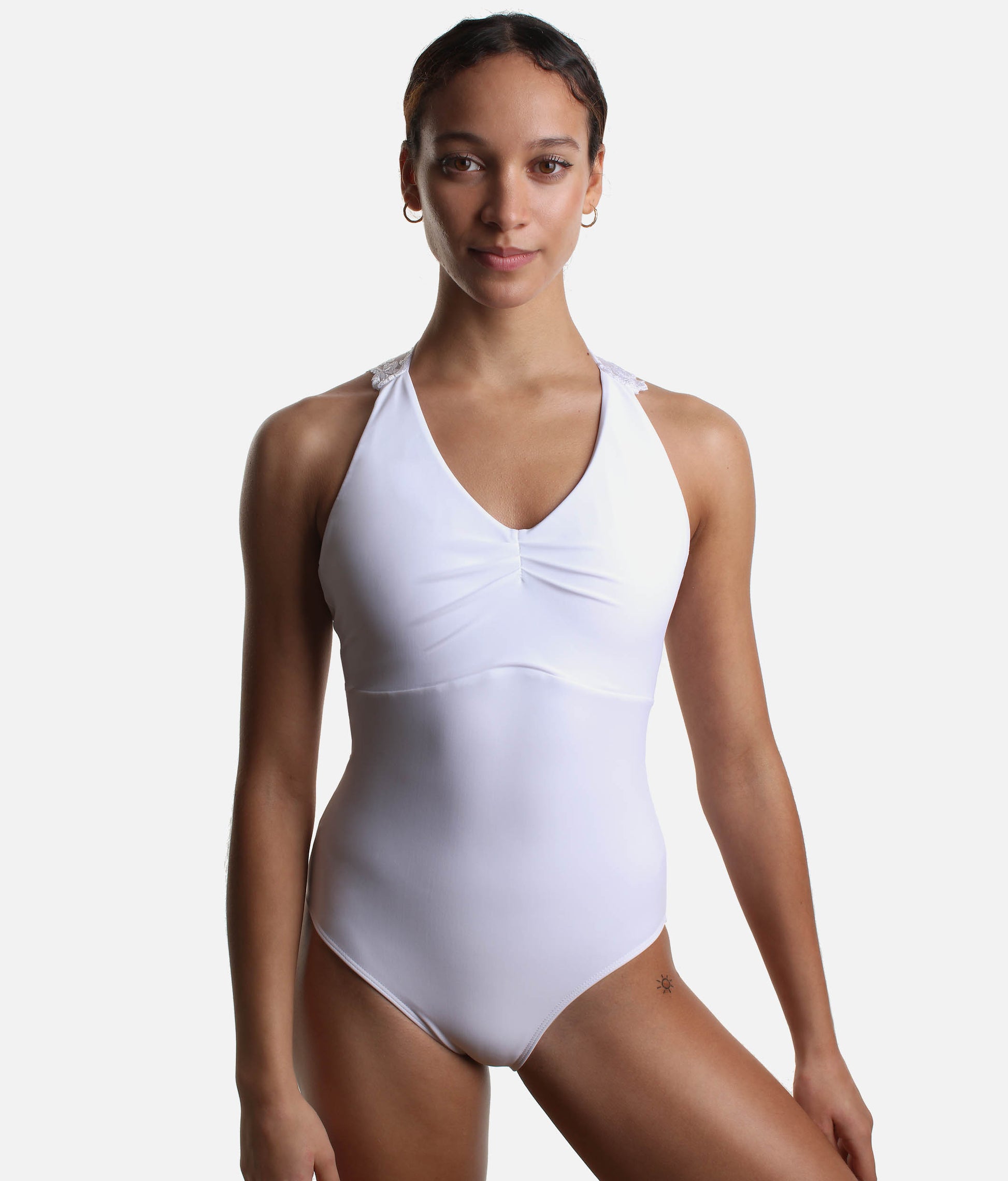 Timeless V-Neckline Leotard with Romantic Lace Back - ESTHER